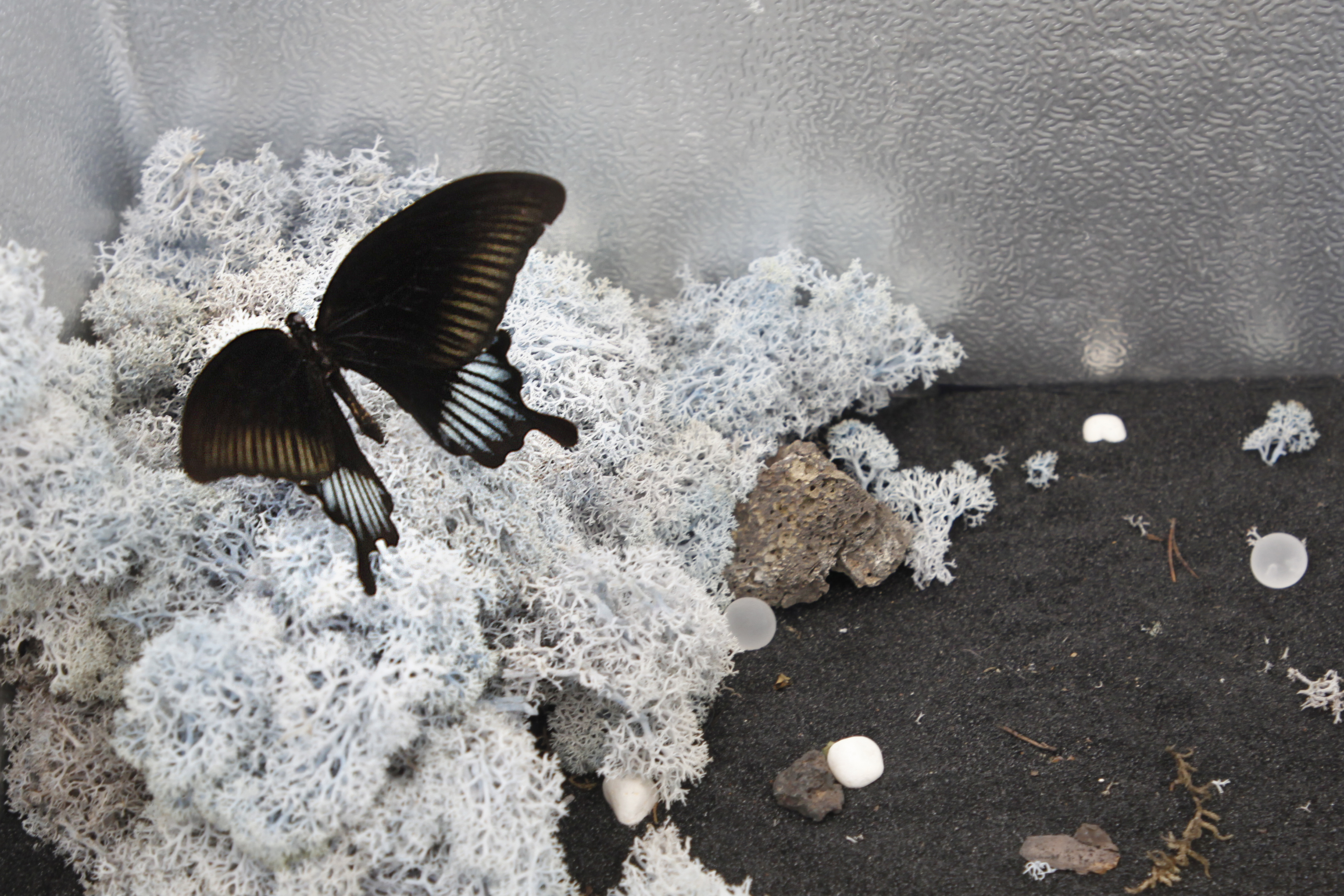 Freezer, Moss, Black Soil, Stone, Butterfly Specimen Frost
